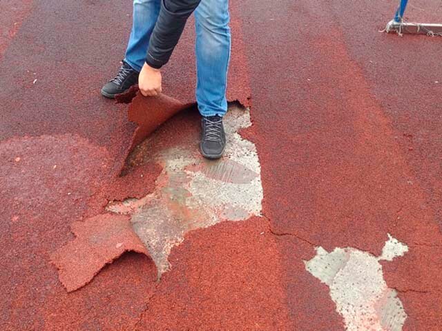 Подрядчик не несет ответственности, в случае отслоения резинового покрытия вместе с основанием, что не является результатом плохого качества работ по укладке резинового покрытия или плохого качества самого покрытия.
