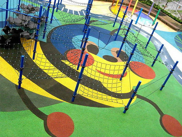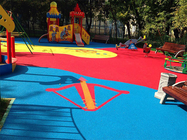 Резиновое покрытие детских площадок остается равномерным, цветным на всем сроке эксплуатации покрытия, чего невозможно добиться от обычной окрашенной SBR крошки. Со временем, в зависимости от интенсивности эксплуатирования пигментный слой стирается и становится проявленным черный цвет резиновой крошки, что существенно снижает эстетичность детской площадки.