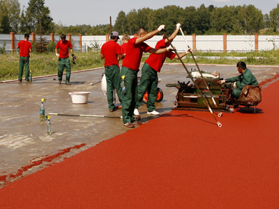 высокая долговечность и высокая устойчивость к истиранию, на площадке покрашенной данной краской можно играть в шиповках на резине совершенно не беспокоясь о ее целостности, устойчивость к выцветанию, атмосферным осадкам и водным растворам моющих средств;
