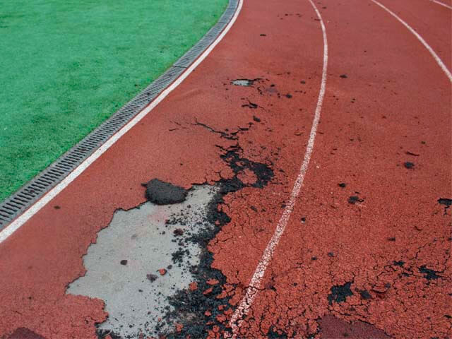 ОПИСАНИЕ: Прочное при воздействии спортивной обувью с шипами 3мм, двухслойное бесшовное резиновое покрытие с напылением для беговых легкоатлетических дорожек на стадионе. 1 слой резиновая крошка. 2 слой механически напыляемый состоящий из смеси окрашенной резиновой крошки и полиуретанового клея